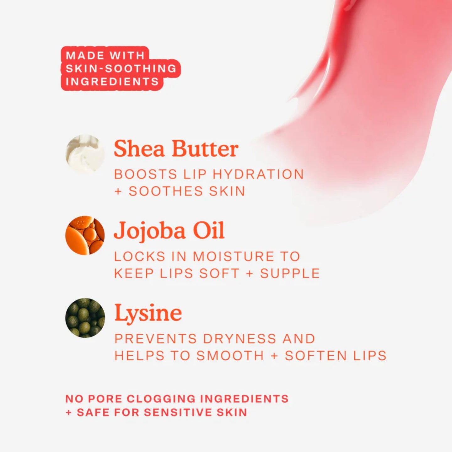 - Lysine: Prevents dryness and helps to smooth + soften lips.
